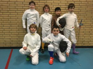 On Saturday the 11th of March at our fencing hall all youth teams won their second equipe meetings. The youngest age group beat Ermelo by 36 to 30 touches. The team members where: Bodil, Sep, Leonardo, Tommy and Alec. Due to an injury Zee couldn’t fence, but supported his team members.