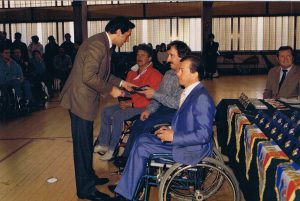 Met leedwezen heeft A.E.W. kennis genomen van het overlijden van haar lid van verdienste Govert van Nimwegen op 16 juni 2018. Govert was door zijn handicap gebonden aan een rolstoel. Samen met onze oud maître Theo van Leeuwen heeft hij zich ingespannen om het rolstoelschermen op de kaart te zetten. Een van de hoogtepunten van Govert was de deelname aan de paralympics in Arnhem in 1980 en in 1984 bij de paralympics in Stoke Mandeville. Govert heeft menig prijs gewonnen bij toernooien. Voor al zijn inspanningen om het rolstoelschermen en voor de vereniging A.E.W. werd hij tot lid van verdienste benoemd.