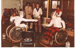 Piet Rodenburg heeft nog tegen hem geschermd. Piet schrijft: In de vroege jaren 90 werd bij AEW nog aan rolstoelschermen gedaan. Govert had op hoog niveau gespeeld (ik vond in het Leids Dagblad dat hij in 1984 meedeed met de Nederlandse sabel-equipe op de Olympische Spelen in Stoke Mandeville – alle drie de treffens overigens verloren), en trainde nog. Bij AEW was hij onverslaanbaar. De van Theo geleerde tactiek om in de eerste l van ‘allez’ de aanval in te zetten konden wij anderen nog wel overnemen, maar met zijn enorm sterke armen kon hij sneller van lijn veranderen dan wie ook.